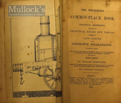 The Engineer’s Common-Place Book of Practical Reference consisting of practical rules and tables, adapted to Land Marine and Locomotive Steam-Engines, 2nd ed, by William Templeton 1841, illustrated with fold out plates, bound in paper wrapped boards A/G condition overall