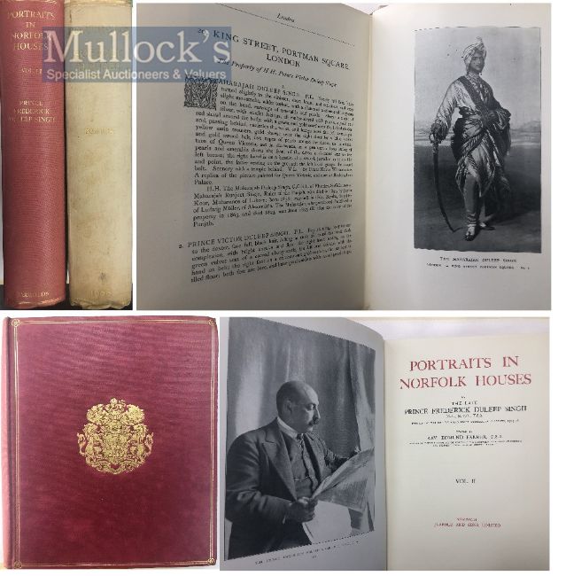 India & Punjab - Duleep Singh Portraits Book A fine bound copy of Portraits in Norfolk Houses by Prince F Duleep Singh, Vol 2 of two volumes., Norwich (no date), 4to, one of 500 copies (this unnumbered), in red cloth with the Duleep Singh’s gilt arms crest to the front cover; with FARRER. Portraits in Suffolk Houses (2) Prince Frederick Duleep Singh was the Maharajah of Lahore second son and a Norfolk Antiquarian and custodian of the family’s Sikhs collection.