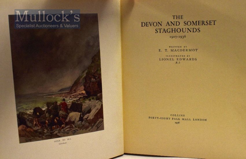Signed - The Devon and Somerset Staghounds 1907-1936 Book limited edition out of 75, by E.T. Macdermot, illustrated by Lionel Edwards, signed by author and artist, London, original leather and cloth binding, intact, minor wear to covers, internally clean
