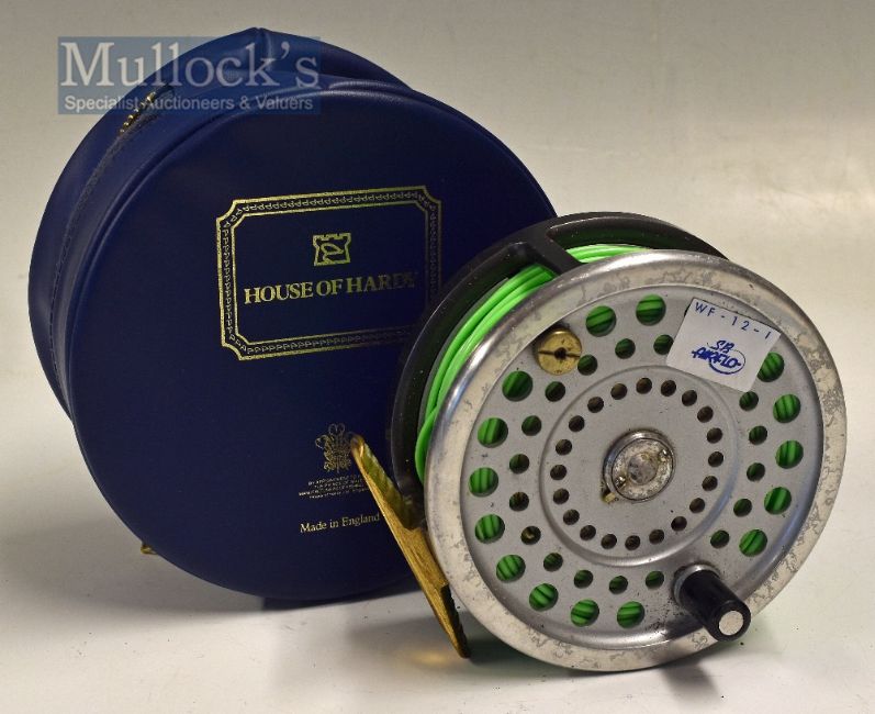J W Young & Sons Fifteen Hundred Series salmon fly reel, spare spool and lines– Model 1535 4.25” dia with dual heavy line guides, chrome foot both with DF10 lines one(S) – again well looked after set – plus reel case