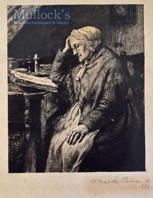 Henry Macbeth Raeburn 1869 – 1947 - “Old Lady Reading” etching signed in pencil by the artist 1886 35 x 28cm mounted