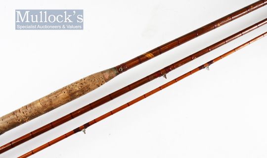 John MacPherson Inverness salmon fly rod: 14 foot 3pc built cane with replaced top – brass reel fittings and butt cap – very good makers decal label – needs refurbishing (AF) in CB