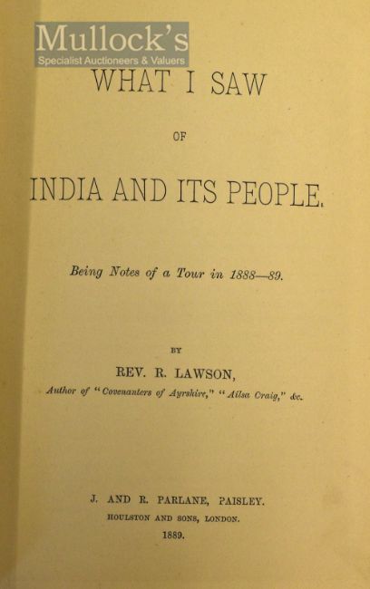 What I Saw Of India And Its People by R. Lawson 1889 Book A93 page book with fold out map. Detailing the Authors travels in India at that time. In Cloth board cover.