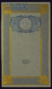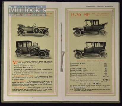 Delaunay Bellville Luxury Car Manufacturers, Paris 1913 Sales Catalogue A most beautiful 24 page sales catalogue illustrating and detailing with prices their large range of 16 models of automobiles ranging from 12hp 4 cylinder cars to 28hp 6 cylinder cars. Printed on the finest quality semi-gloss paper in attractive Art Nouveau printed and embossed card cover tied with silk cord, size 4¾" ´ 8¼”. Good, clean condition