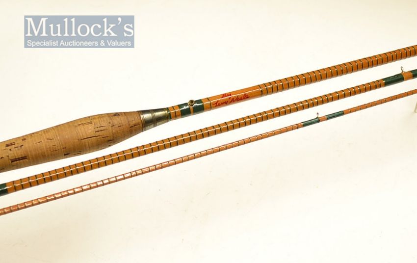 Allcocks The Sapper split cane fly rod – 10ft 3pc with red agate lined butt guide c/w brass butt cap stamped Allcocks and brass reel fittings – script reads “The Sapper - fully restored by Terry Neale” in CB