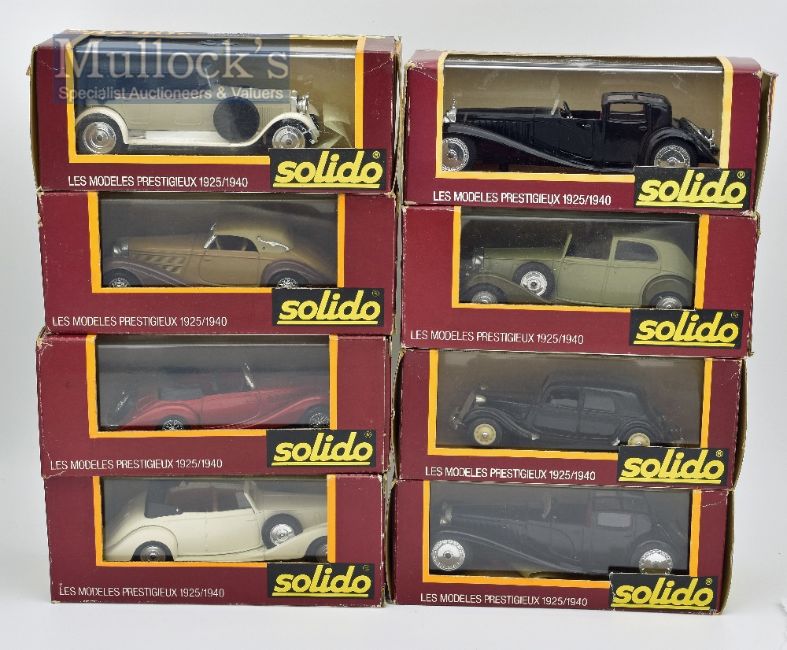 Solido Diecast Model Toy Cars to include a varied selection such as Ferrari 4506, Mercedes 4502, 4503, 4067, Cadillac 4042, Citroen 15 CV, Bugatti Royale, Rolls Royce and more, all boxed within hardcases, appear in good condition overall (21) Box