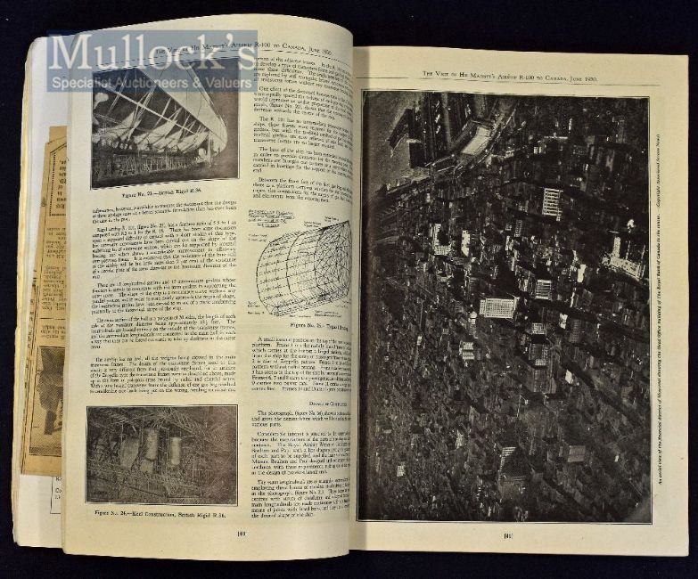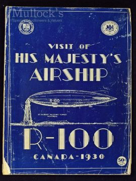 Visit Of His Majesty’s Airship R100 To Canada 1930 Publication - A very interesting 96 page Canadian publication detailing this visit of the newly constructed Airship to Montreal. With photographs & artists illustration of the Airship & men involved etc. Text giving its construction designed to carry 100 passengers between England and Canada or India. Printed on fine gloss paper, size 8½” × 11¼”. The R100 was largely designed by Barns Wallis who later designed the Wellington bomber and the bouncing bomb of Dambusters fame. The Airship made a successful trial crossing to Canada and back, but although better designed and constructed, it was scrapped when Airship R101 crashed in France in 1931