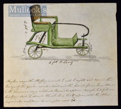 C.1838 Design for a Bath Chair Drawing a hand coloured drawing with manuscript text below, watermark date of 1837, measures 17x18cm approx.