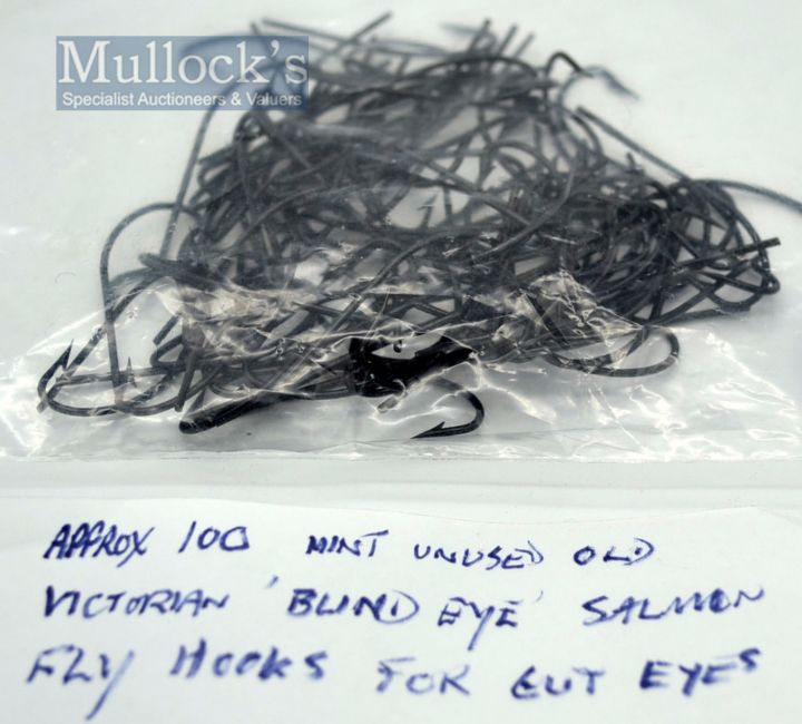 Collection of Vic unused “Bind Eye” salmon hooks for gut eyes – all unused and ready for tying in all approx 100