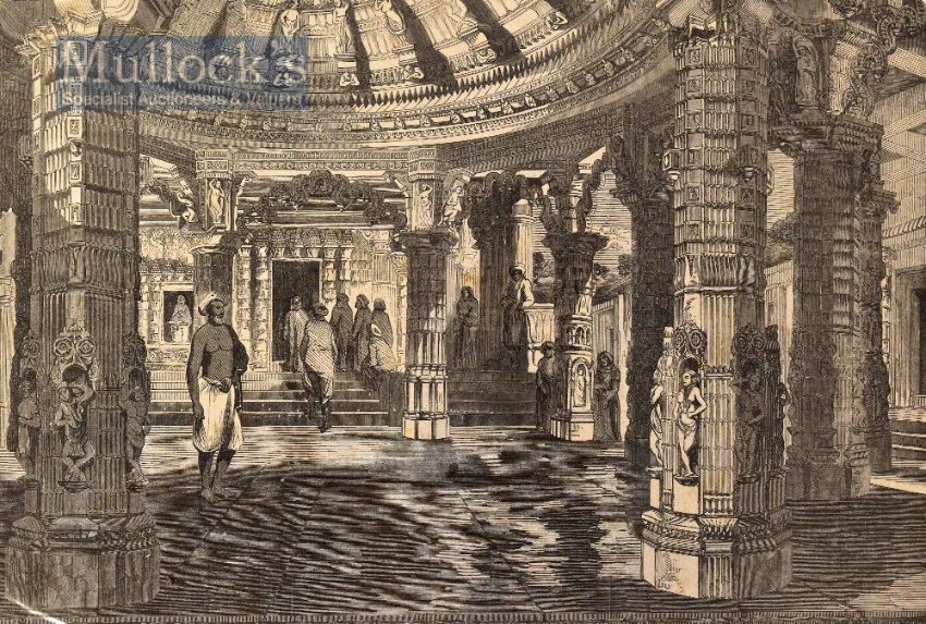 India & Punjab – ‘Interior of a Jain Temple at Dailwarra, Mount Aboo’ Original Engraving from a drawing by MR. W. Carpenter, 1857, mounted on card