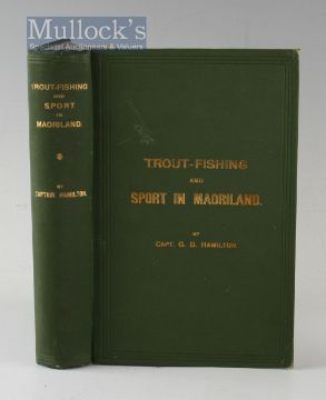 Fishing Book - Early 20thc Fishing Book - Hamilton, Capt. G.D. – “Trout-Fishing and Sport in Maoriland” 1904 published Wellington, 2x frontis Plates, 23 illus. and map, in original green cloth binding, light wear to cover o/w clean