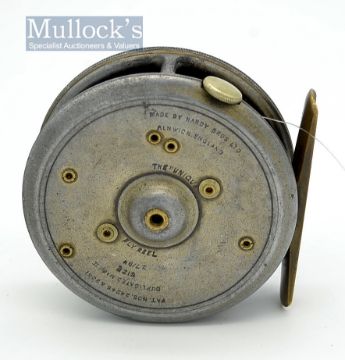 Hardy Uniqua Dup Mk.2 small alloy trout fly reel - 2 5/8” dia with rim tension adjuster, black handle, telephone latch, and correct smooth brass foot – very slight filing if at all to one end – runs smoothly