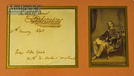 Autograph – Charles Dickens (1812-1870) Signed Letter Display includes concluding section of letter dated 25th January 1840 ‘Faithfully yours, Charles Dickens’, with image of Dickens seated opposite, framed measures 32x23cm approx.
