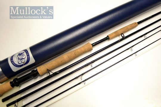 Fine Thomas and Thomas USA carbon travel sea trout fly rod – 9ft 4pc – line 12# with fuji style guides to the 2nd section, black anodised screw locking reel fittings – very lighly used – c/w tip section protector - in original cloth bag and makers alloy rod tube – model no HS912S-4