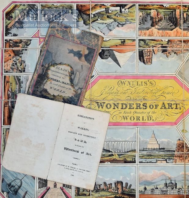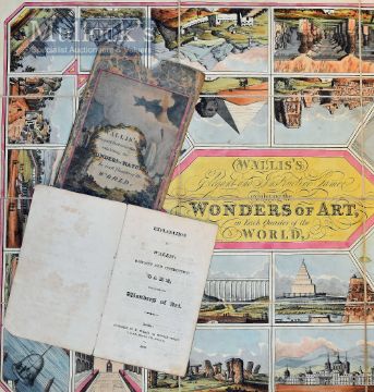 Wallis’s Elegant and Instructive Wonders of Art Game - Game-board with 26 numbered pictorial compartments, each representing a Famous wonders from all over the World Published Edward Wallis housed in a contemporary slip case. 1820 Hand-coloured etching backed on linen with original rule booklet 61 x 45cm