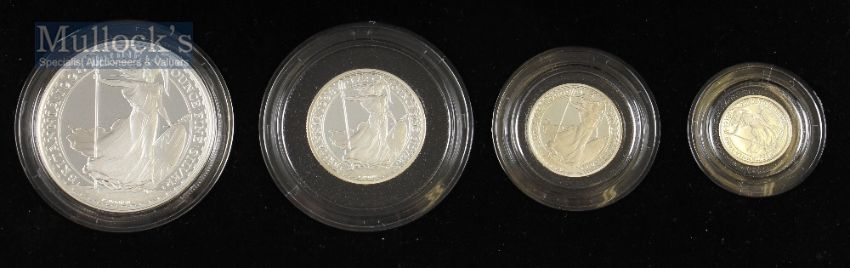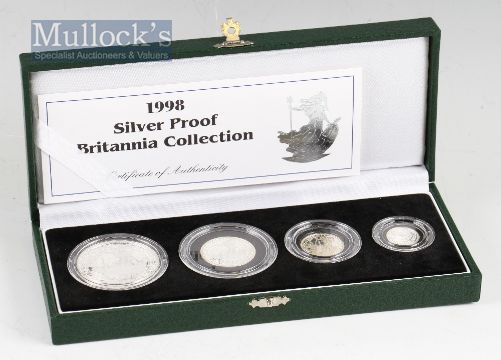 1998 Royal Mint Silver Proof Britannia collections to consist of 20p, 50p, £1, £2 all in .925 silver in green presentation case