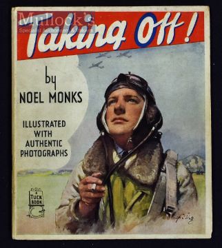 WWII - Taking Off Publication By Noel Monks - Circa 1942- 43. An unusually fine quality publication for that period by Raphael Tuck. A 44 page publication with 32 photographs about the R.A.F.  sub titled “Our Airmen in the making”. In pictorial card cover size 5½” × 6½”.
