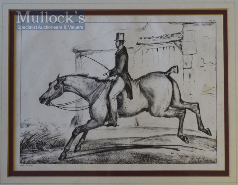 P. Levieux c.1800 Lithographs in black and white, all depicting horse dressage and jumping, all framed measuring 38x32cm approx. (3)