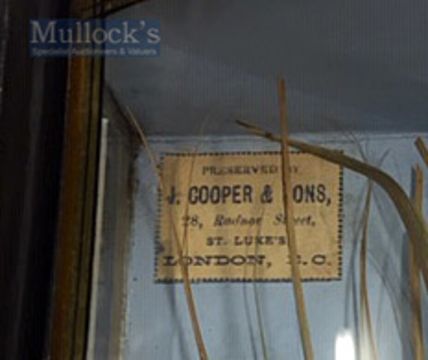Early J Cooper & Sons 28 Radnor Street preserved Barbel dated 1904 - mounted in glass bow fronted case with makers label to the top left hand corner c/w gilt inscription “Barbel - Caught at Staines, Sept. 30th, 1904 Wgt 4lbs” overall 13” x 26.75” x 6”