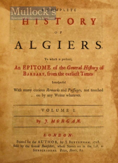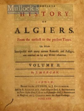 A Complete History of Algiers 1728/1729 Book by J Morgan, London printed for the author by J Bettenham 1728, in 2 Volumes, in full calf binding, book worm noted to some pages, o/w A/G examples