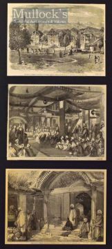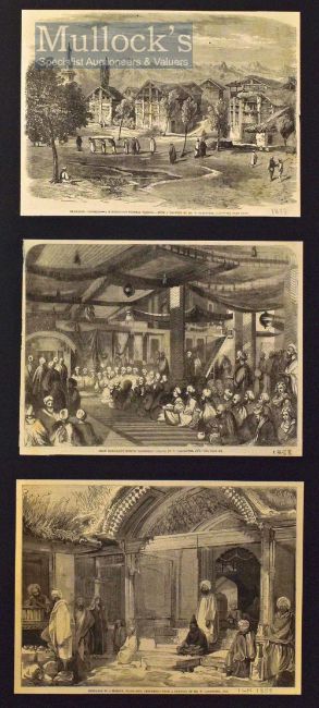 India & Punjab – 3x ‘Cashmere’ Original Engravings ‘Shah Ramadan’s Musjid Cashmere’, ‘Entrance to Mosque, Islamabad, Cashmere’ and ‘A Mahommedan Funeral Passing, Islamabad, Cashmere’ – 1858/59, all 24x18cm approx., mounted on card, all after drawings by W. Carpenter