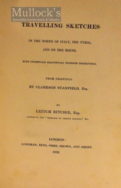 Northern Italy & Switzerland - Travelling Sketches In The North Of Italy, The Tyrol And On The Rhine by Leitch Richie 1832 Book - An interesting travel book of 256 pages with 26 attractive tissue guarded Plates. Giving an interesting account regarding, travelling through this Beautiful part of Europe by Diligence Coach, The Towns of Switzerland, The Tyrol and Northern Italy as far as Venice. The beautiful scenery of the Mountains and Countryside etc. In original leather binding with gold tooling, size 6½” × 10”.