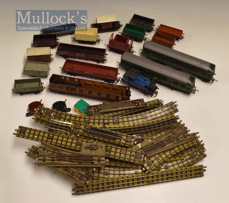 Triang OO Gauge R157/158 Power Car and Trailer M79079 and M79632 plus a selection of Hornby Dublo 3 rail track to include straights, bends, line changers, and various rolling stock, play worn, worth inspecting (Qty) Small Box