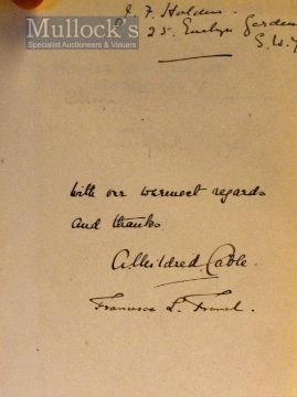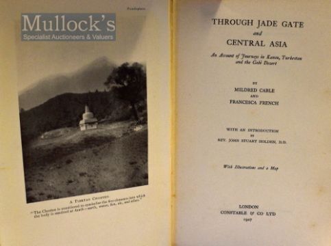 China – ‘Through the Jade Gate and Central Asia’ Signed Book by Mildred Cable and Francesca French, London 1927, presentation copy to JS Holden from M. Cable and F. French, illustrated, folding map to rear, covering their journey through Kansu, Turkestan and the Gobi Desert