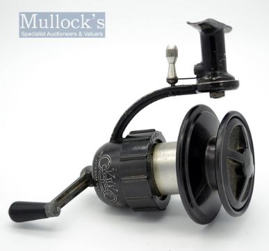 Extremely rare Allcocks The Oto 44 side casting spinning reel - alloy casing with sprung twisting foot mechanism, Felton Crosswind style Bakelite spool with large tensioner, the alloy casing stamped “Systeme Janemian - OTO 44 - S Allcock & Co” knurled screw collar from casing to shaft, alloy crank handle with lock screw operating through the rear of the gear case, probably one of the most bizarre reels that I have ever seen – come in JS let’s have your take on this one!!
