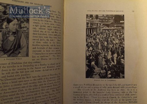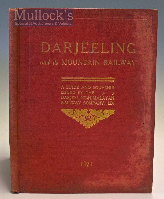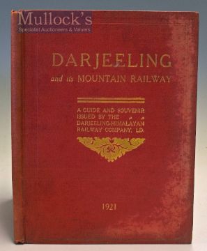 Darjeeling And Its Mountain Railway Sub titled “A guide and Souvenir issued by the Darjeeling-Himalayan Railway Company Ld” 1921 Book First Edition. A very interesting 106 page book with over 50 photographs and 26 drawings many of which are of the railway. Plus detailing text regarding that most beautiful Indian Hill Station. In red cloth board binding with gold tooling, size 6¼” × 10”.