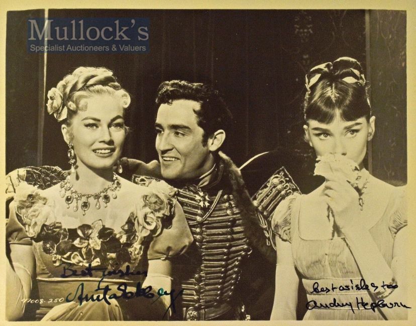 Autographs – Audrey Hepburn (1929-1993) and Anita Ekberg (1931-2015) Signed Photograph depicted as in ‘War and Peace, 1956’, black and white, both signed ‘Best Wishes’ to the front, in black ink, measures 26x20cm approx.