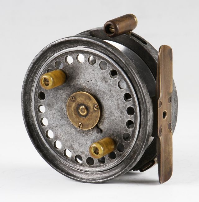 Unnamed Silex No.2 style alloy casting reel - 3.1/8” dia - 3 screw brass drum release latch – and on/off check rim lever – smooth brass foot – ventilated drum core - runs smoothly