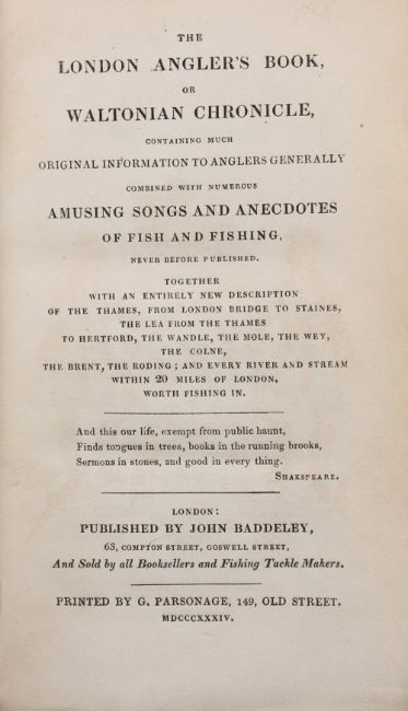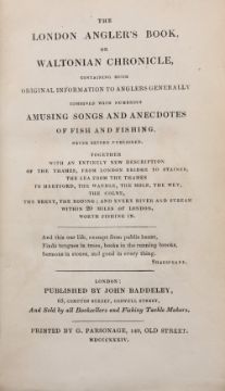 Baddeley, John – The London Anglers Book or Waltonian Chronicle, published by the author, London 1834, engraved frontis plate an interimmed copy in old style ½ calf binding