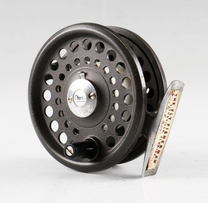 Orvis Made in England “Madison” alloy trout fly reel – 3 3/8” dia – chromed alloy foot rear back plate rim tension button – lightly used c/w backing