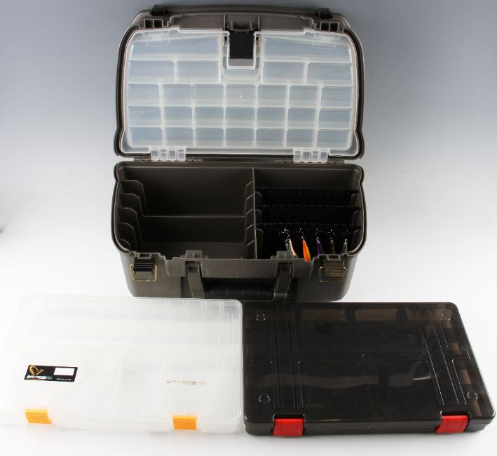 Bait / Lure Boxes: Plastic Lure boxes Plano Series 3 layer box to house large to small having some lures together with 2 single tray boxes (3)