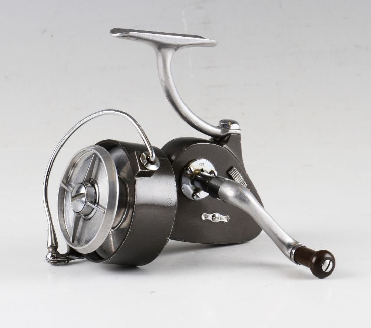 Hardy The Exalta Mk2 spinning reel: Full LH bail arm, alloy spool with 2 blade drag adjuster, on/off check, and retains most original grey enamel finish, c/w instruction leaflets and tools in MOB. (note Dr E.M. Stirk scratched on name plate)