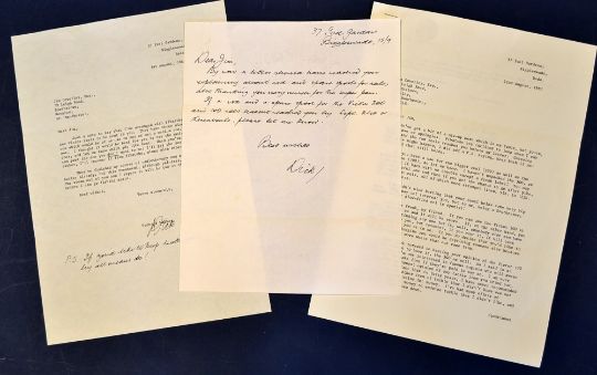 Richard Walker letters 1983 (3) – 2x typed and one hand written and hand signed “Dick” – all with reference to the Victor reels, eels in canals – and having an honest opinion. The first letter dated 1/8 recommending three sizes – the big one of no use to either of them, but best to try the medium and small one and suggested that if he didn’t like one, post that one onto him. Followed by a hand written P.S If you‘d like to keep both reels by all means do! The second letter dated 22nd Aug 2p typed letter starting off “Fibatube are inclined to jump when I say “jump” and the 2 reels reached to before my letter. Guessing that this might happen I did add a PSA keep both if you like and that still holds”. Discussing the pros and cons of the 300 real especially if fishing for pike, big Carp, or eels. Walker then goes on to discuss the canal which covertly fishes the possibility of finding some very big eels which… “They may not interest you but to me being a Southerner stewed eel or slow-fried is special!” Walker then discusses the potential use of the Victor 300 which if he didn’t get on with to return it somebody else could have it which would cost “Nowt, either to you or to me. If you decide that you’d like to have it don’t imagine you would be depriving someone else” the final paragraph once again asks he will get a true reply from a close friend and goes on to say… “I’m not interested in famous anglers who will swear that to and to make 5 if the paper says….I am proud of the fact that in 40 years I have never recommended a rod, reel or any other item of tackle like no was not only good but good value for money. I’ve had many offers of considerable sums of money to endorse tackle and I didn’t like and always turned them down.….Would you let me know the name and address of the tackle shop where you usually go when you want to buy something also the name of its owner” the final letter handwritten and dated 15th 9th explaining a letter should have reached globally explaining about the rod and spare spools variables and also is thanking him very much for the super pen.