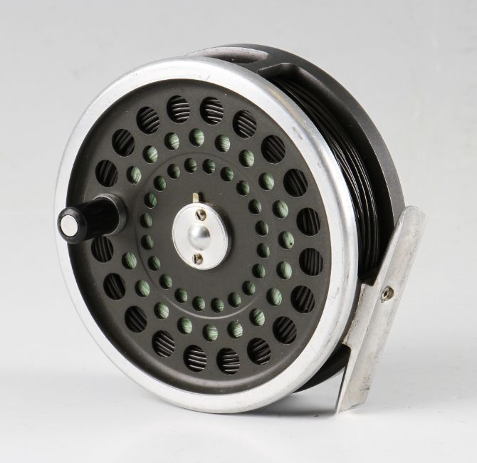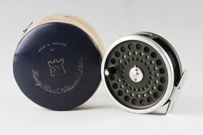 Hardy Marquis No.10 alloy fly reel: U shaped line guide, 2 screw drum latch, black handle, backplate tension regulator, used condition, cover missing off back plate centre nut with line and Hardy case