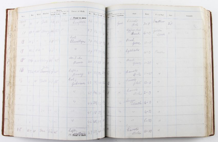 Wyeside Lodge Hampton Bishop River Wye Fishing Register, 1935 – 1966 featuring various fish caught (note the large sizes and weights of fish) to include high prominent people such has HRH Prince Arthur of Connaught