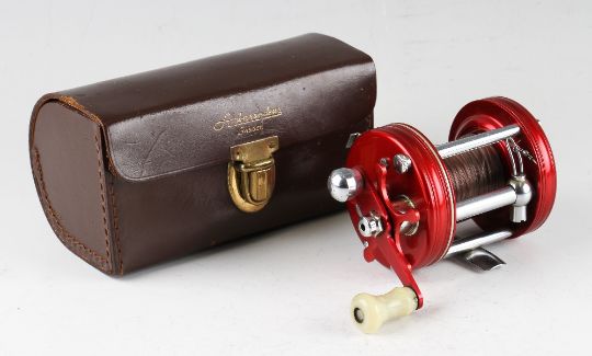 Abu Ambassadeur 6000 level wind multiplier - with red end plates although with line there are no signs of use comes in the makers leather case complete with oil bottle and the original spares tube (G)