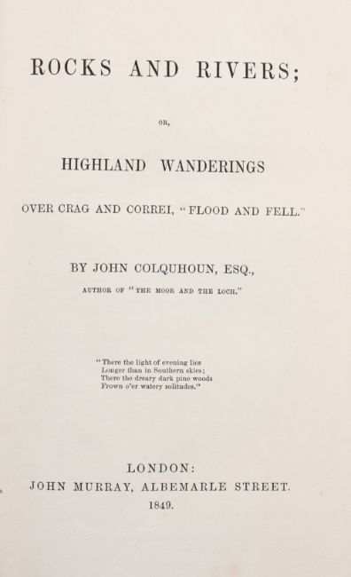 Colquhoun, John – Rocks and Rivers, London 1849, 1st edition original green cloth binding with book plate Richard Henry Venables Kyrke