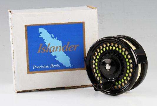 Islander Canada The Arla LA Ocean or Salmon fly reel – 3.8” dia anti-reverse ventilated reel, c/w line - Serial no 432 c/w makers neoprene case and original makers box – appears unused (VG)