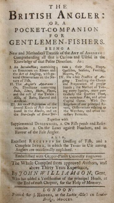 Williamson, John – The British Angler of Pocket Companion for Gentlemen Fishers, published 1740 1st edition engraved frontis and 3 folding engraved plates, rebound old style full calf binding