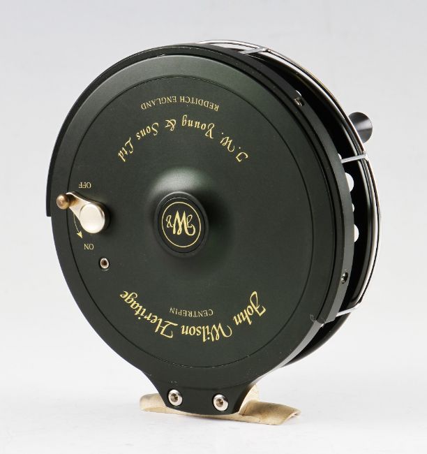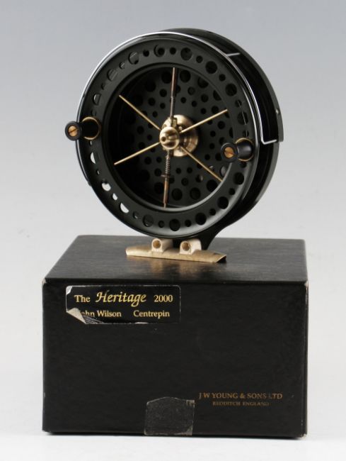 J W Young & Sons Heritage John Wilson Centre Pin 2000 Fishing reel, 4.5”x .75, 6 spoke, twin black handle, smooth foot, 2 ball bearings, a click check, a micro adjustable disc drag and a unique multi position line cage. Brand New in MOB c/w Certificate of Authenticity No 0158 April 1998