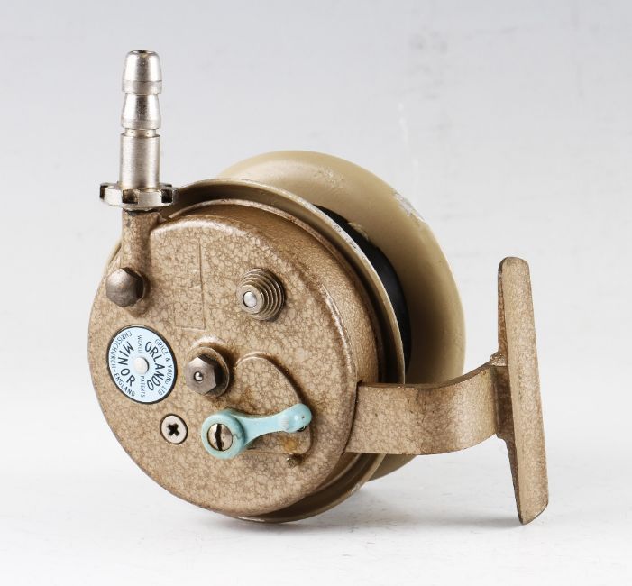 Good Grice & Young Ltd Christchurch England Orlando Minor beach casting reel - 3 5/8” spool dia, pillared drum with makers plastic protective covers – appears unused and comes in makers original box