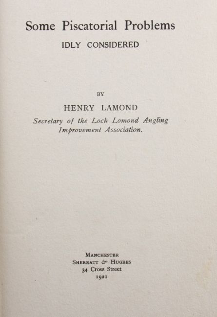 Lamond, Henry – Some Piscatorial Problems Idly Considered, Manchester 1921, Presentation copy from Manchester Anglers Association by Arthur Hatton