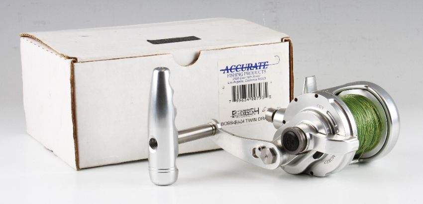 Accurate Boss Magnum twin drag casting reel – 870M silver anodised, 4.6.1 gear ratio and comes in makers box c/w line and parts list retail new from £165