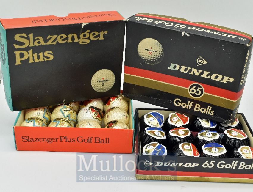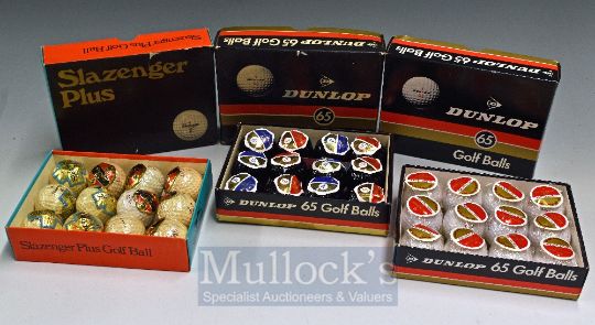 c.1970s 36x Modern Wrapped Golf Balls mainly Dunlop 65s and Slazenger Plus in their three original one dozen boxes