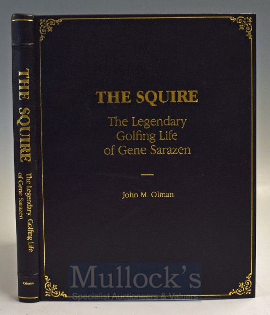 Olman, John and Gene Sarazen signed by both - “The Squire-The Legendary Golfing Life of Gene Sarazen” special ltd ed deluxe leather and gilt proof copy 1987 signed by both Gene Sarazen and the author to the limitation page (proof copy) - numerous photograph illustrations throughout again appears unread hence overall (VG)