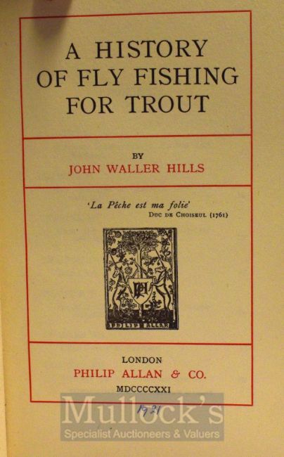 Hills J W – A History of Fly Fishing for Trout London 1921 1st edition original cloth binding